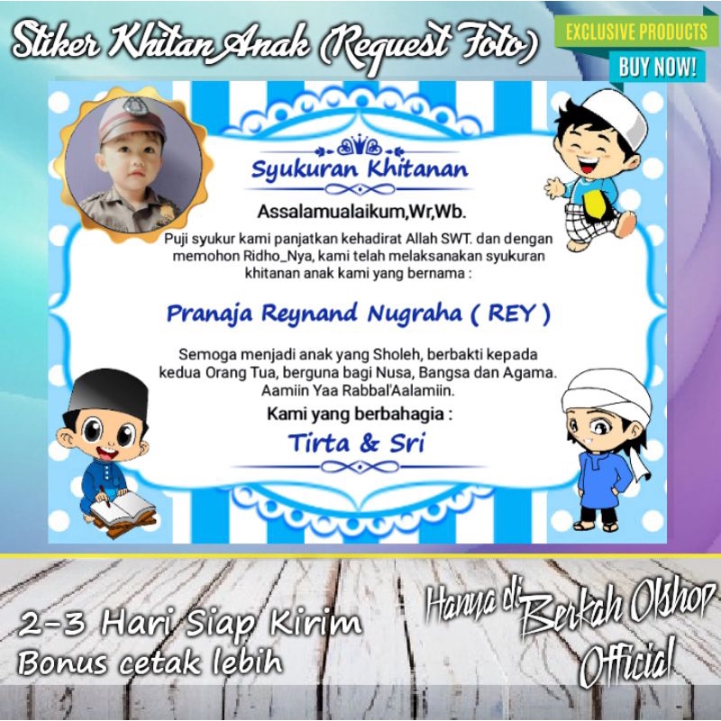 Jual Stiker Syukuran Khitanan Pakai Foto Anak Tasyakur Walimatul Khitan Termurah Indonesia Shopee Indonesia